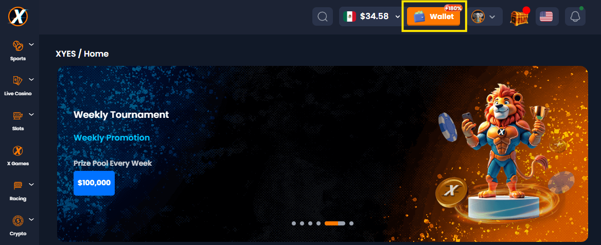 Navigate to "Wallet" in the upper right corner of the XYes page and click on it.